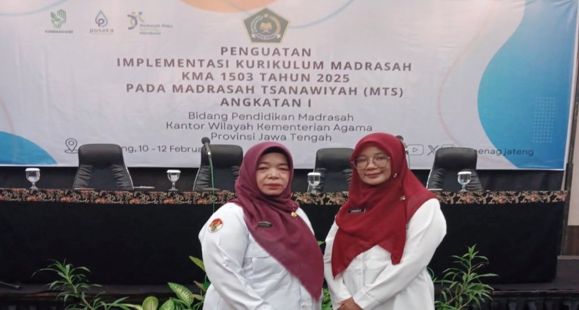Slawi - Komitmen MTs Negeri 2 Tegal dalam menghadirkan pembelajaran yang humanis dan bermakna kembali diperkuat melalui partisipasi dalam kegiatan Penguatan Implementasi Kurikulum Madrasah (KMA 1503 Tahun 2025). Kegiatan yang digelar Kantor Wilayah Kementerian Agama Provinsi Jawa Tengah di Hotel Grasia, Semarang, Selasa–Kamis (10–12/2), menjadi ruang penguatan bagi praktik Kurikulum Berbasis Cinta yang telah berjalan di madrasah.
